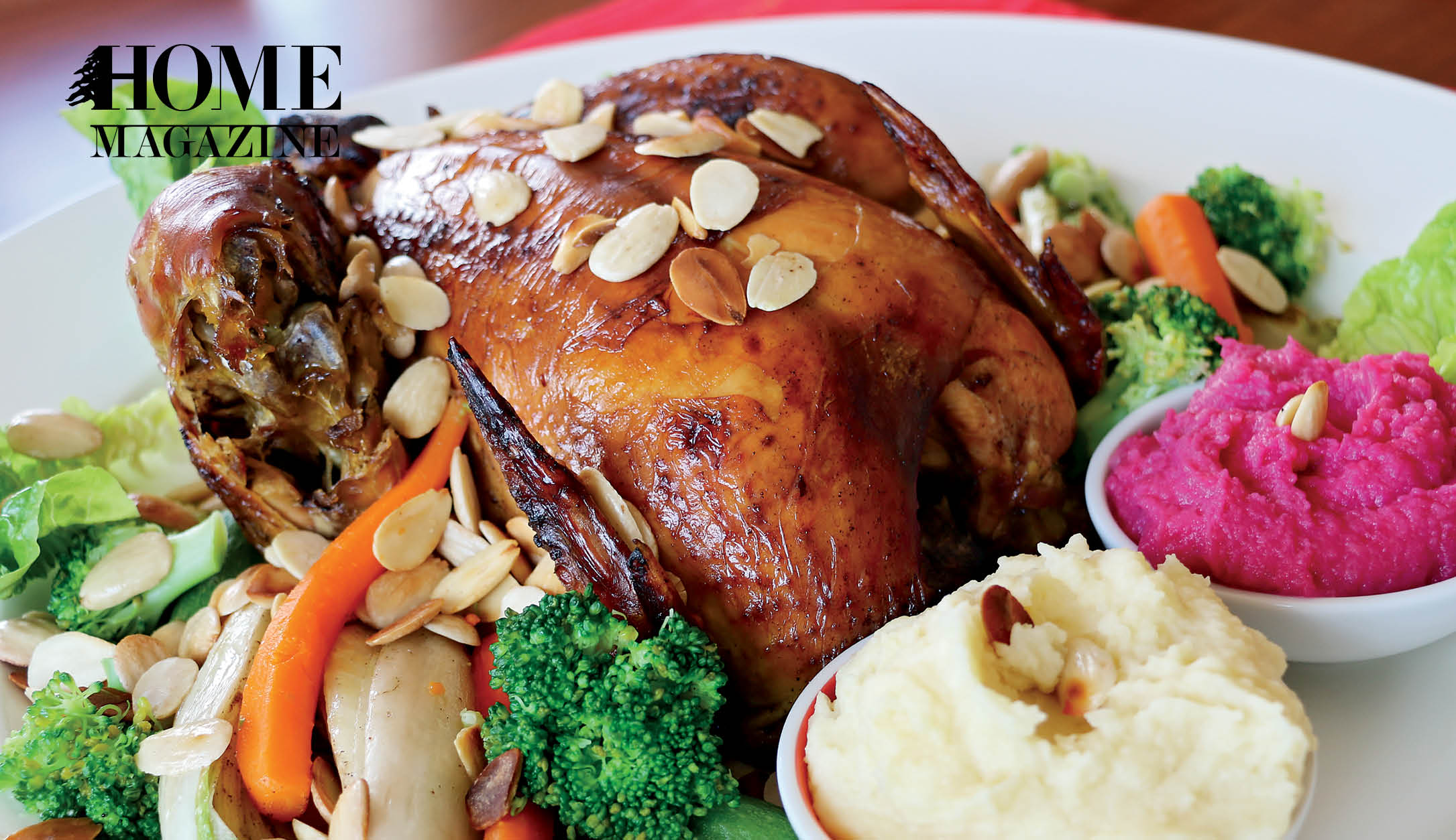 A warm and colorful, family-oriented dish, perfect for Christmas. The capon is a fatty and less dry alternative to turkey and this particular recipe combines a Lebanese style with a French feel